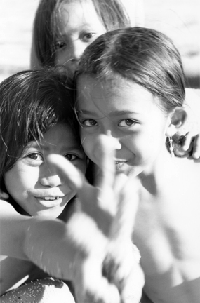 Padangbai, Bali, Indonesia I was enjoying a $3/hr massage on Padangbai beach while discussing with my new lady friends just how many more I would get in the next few days. My attention was suddenly diverted by a group of adorable children who had bounced onto the sand below, pulling off their outer layers to frolic in the warm, rocky bay. Just how much longer was this massage? The nonexistent tension in my back quickly became secondary to playing with these cute, vivacious kids. As they struck their signature pose, Bali became my personal paradise. SBR |